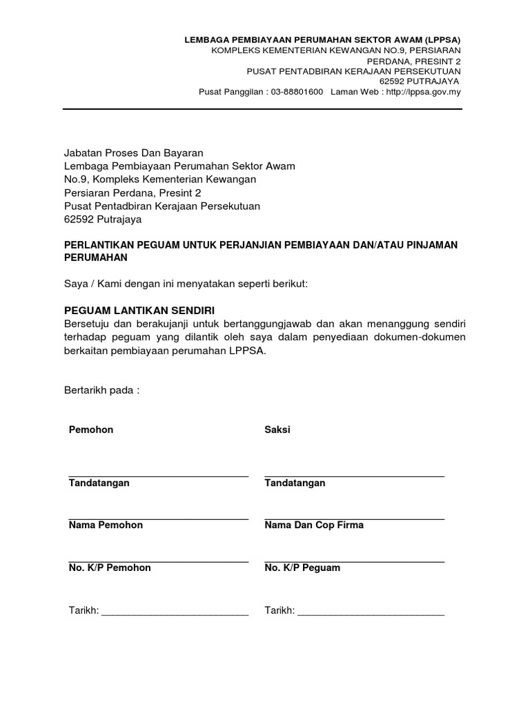 Lembaga Pembiayaan Perumahan Sektor Awam Lppsa Notis Makluman Pelaksanaan Mewajibkan Penggunaan Peguam Berdaftar Lembaga Pembiayaan Perumahan Sektor Awam Lppsa Dalam Urusan Perjanjian Pinjaman Pembiayaan Lppsa Berkuatkuasa 1 Julai 2018 Pemohon